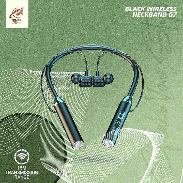 Black Wireless Neckband g7- Bluetooth Headset with Microphone with own packing
