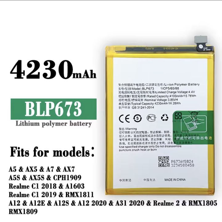 BLP673 Replacement Battery For OPPO A3S AX5 A31 A12 A11 A11K Realme C1 2 RMX1805 Mobile Phone BLP-673 Latest Battery.
