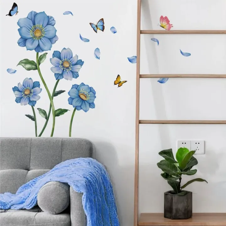 Blue Flower Butterfly Wall Sticker wall sticker for bedroom ( Hight 22 inch/ Width 30 inch )