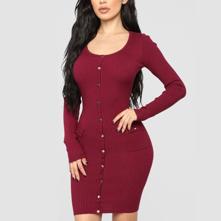 Bodycon Long Sleeve Top - Trendy Rib Fabric Button-Detail Women’s Top