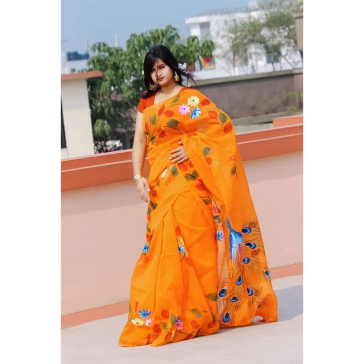 Boishakhi Collection Exclusive Designer Hand Print Half Silk Saree for women
