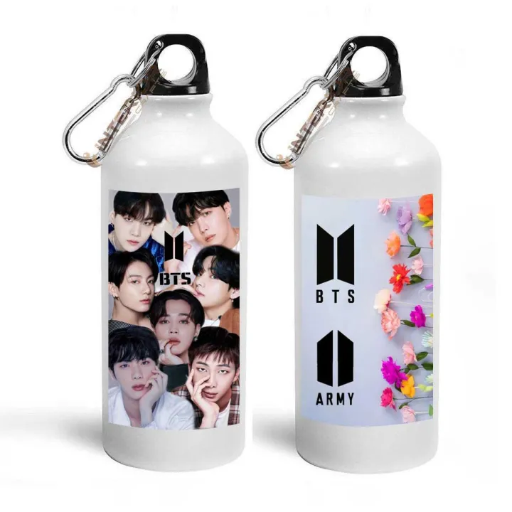 BTS Logo With BTS Member Printed Water Bottle Sipper ,White Aluminum, Best Gift for BTS Lovers Water Bottle (600ml-PACK 1)INTE-7889 - Water Bottle - Water Bottle - Water Bottle