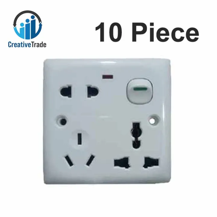 Bundle of 10 Pieces 5 Pin Multi Function Universal Wall Gang Socket - Gang Universal Socket Easy to Use and Maintain