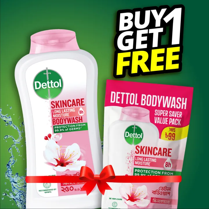 Buy 1 Get 1 Free - Dettol Skincare Rose & Sakura Blossom Bodywash 250ml with 8 Hour Lasting Moisture + Skincare Bodywash 170ml Super Value Refill