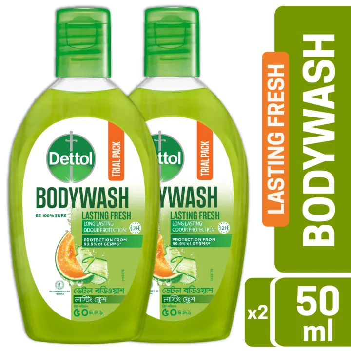 Buy 2 Dettol Body Wash Trial pack 50ml Shower Gel Lasting Fresh with Refreshing Melon & Cucumber Fragrance, 12 Hours Odour Protection