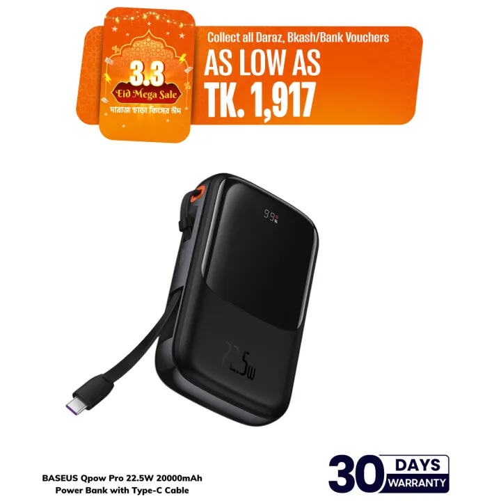 BASEUS Qpow Pro 22.5W Quick Charging 20000mAh Power Bank with Type-C Cable