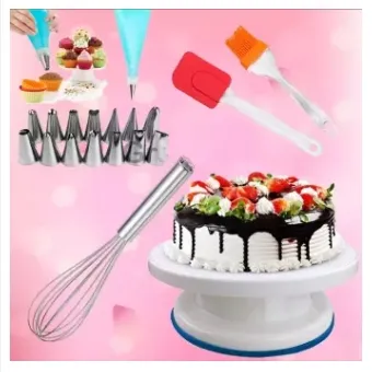 Cake decoration tools Combo Set/1x trun table 1x Hand-Held Egg Beater Steel -Silver 1x Oil Brush & Spatula Set 1 x Cake Nozzle Set 100 piece paper cup mold