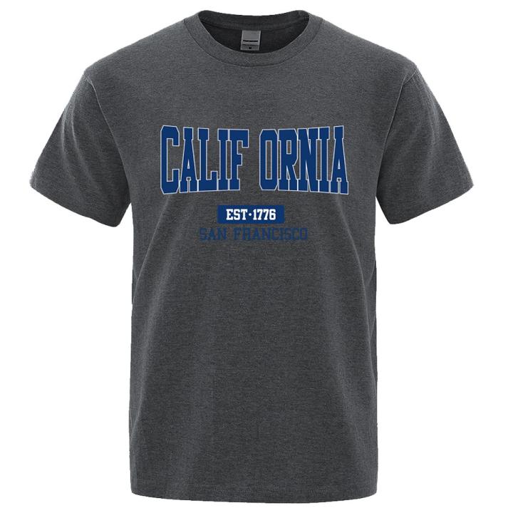 California Est.1776 San Francisco Letter Tshirt Man Casual Sweat Loose Tee Clothes Cotton Summer Crewneck Tops Oversized T-Shirt