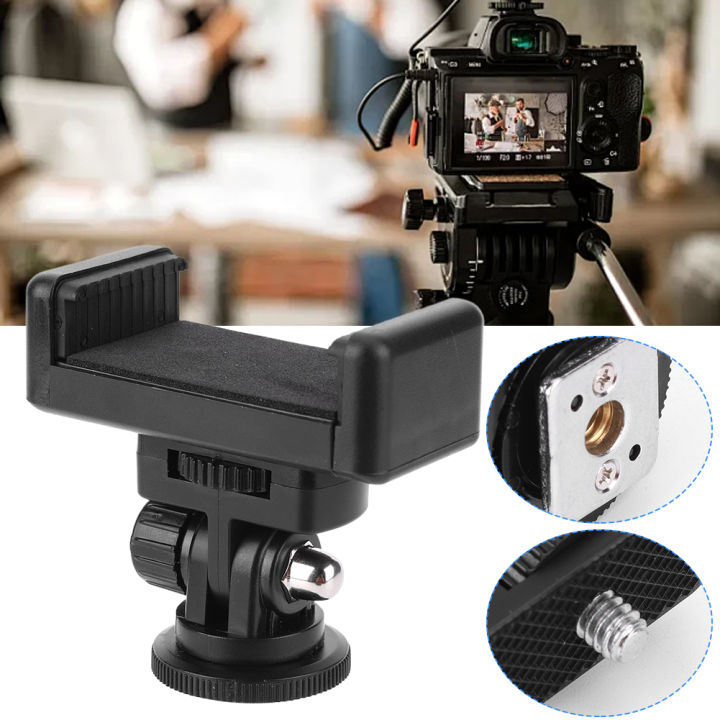 Camera Hot Shoe Phone Holder with Cold Shoe Mount Smartphone Clip RotateAdjustable Clamp Holder for Canon Nikon Sony DSLR Camera
