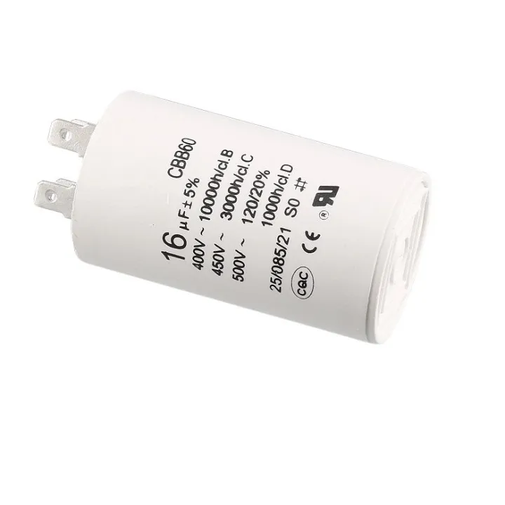 CBB60 Run Capacitor 16uF 450V AC Double Insert 50/60Hz Cylinder White for Air Compressor Water Pump Motor