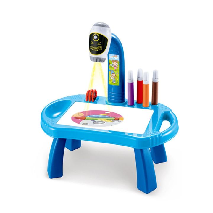 Children Learning Desk Trace and Draw Projector Art Drawing Board Projection Tracing Painting Table - blue