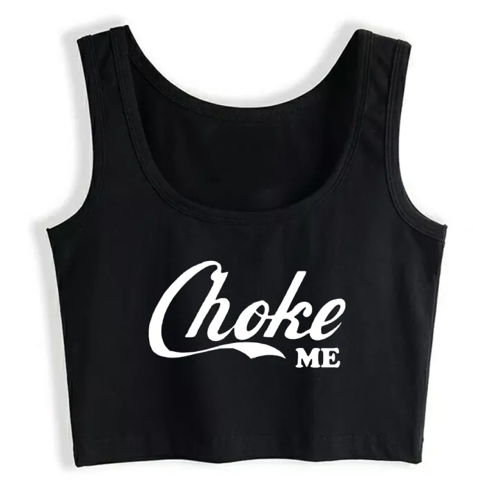 Choke Me Pastel Goth Graphics Flirting Style Crop Top Hotwife Fun Sassy Slogan Cotton Tank Tops Swinger Naughty Camisole