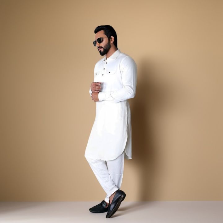 Classic White Lilen Kabli Set For Men - Panjabi - Panjabi For Men