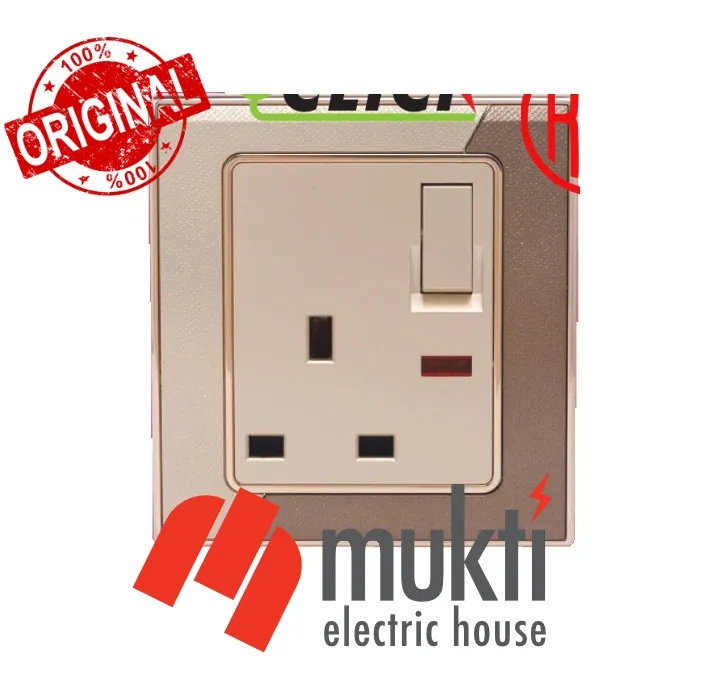 CLICK Marigold Series 13A Three Pin Flat Socket with Indicator Electrical Wall Switch 3 Pin