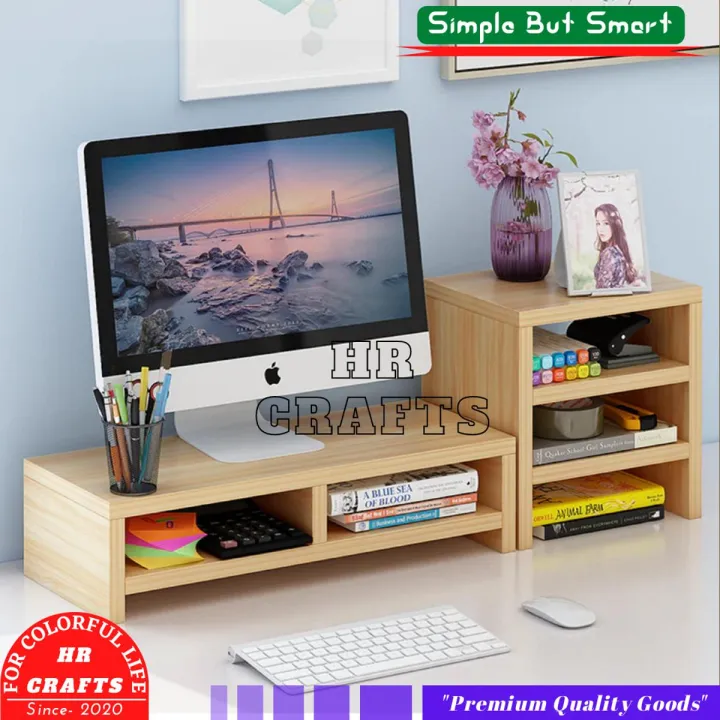 Computer Monitor Display Stand with Storage Rack 3 Shelf-Color White Black & Multicolor-HR Crafts