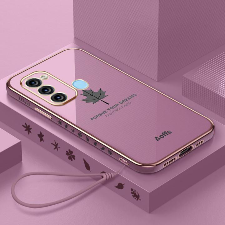 COROGI for Itel Vision 3 Back Cover with Lanyard Luxury Plating Maple Leaf Stylish Fancy Case Soft Silicone Square Mobile Phone Cases Pouch for Girls Boys