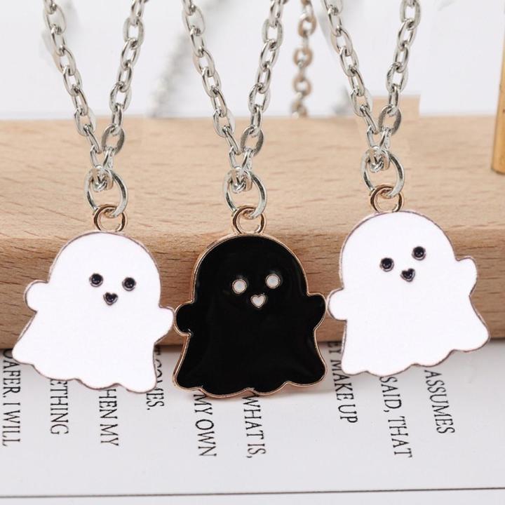Couple Ghost Necklace-2pcs-Little Ghost Pendant Necklace-Black White - Fashion Couple Female Student Accessories