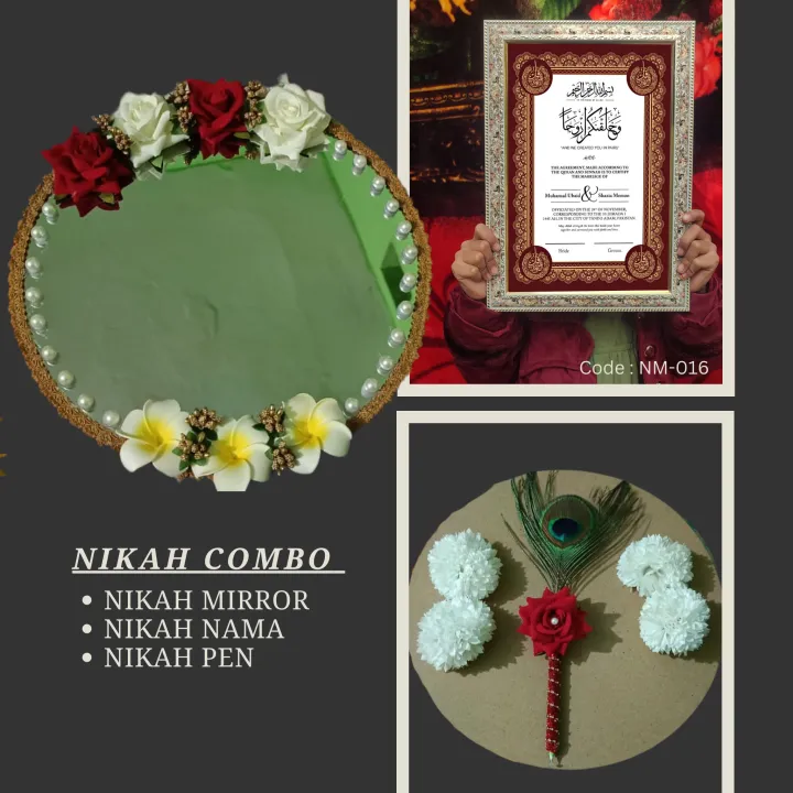 Customised Wedding/Nikah Combo set: Nikah Mirror, Nikah Pen, Nikah Nama For Wall Decor photo frame design