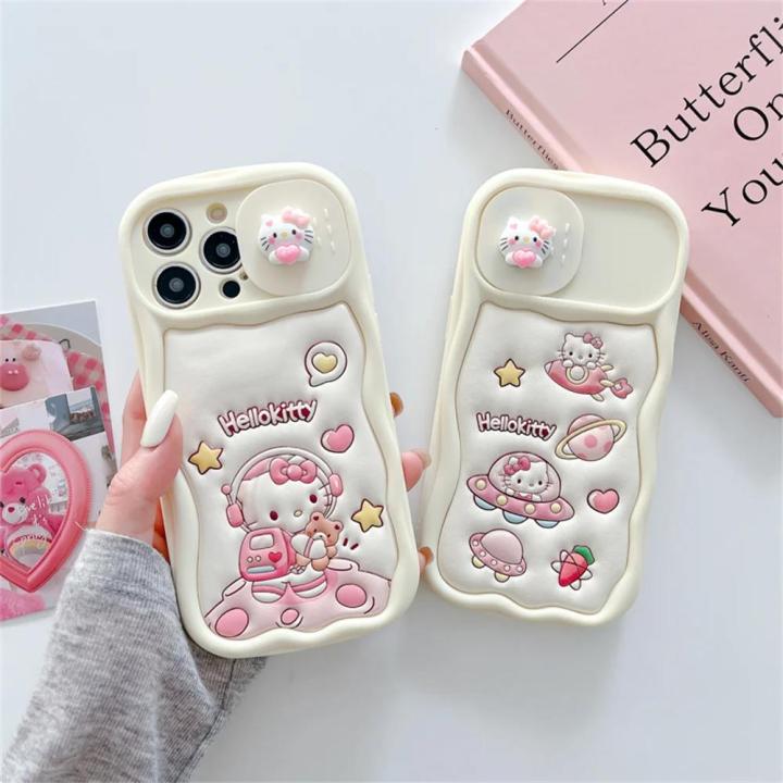 Cute Cartoon Hello Kitty Sliding Door Camera Protector Phone Case for Iphone 11 12 13 14 15 Pro Max Soft Anti-fall Protect Cover