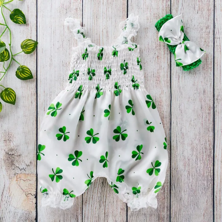 cute warm Toddler Baby Boy Girls St. Patrick's Day Sleeveless Romper Jumpsuit Clothes