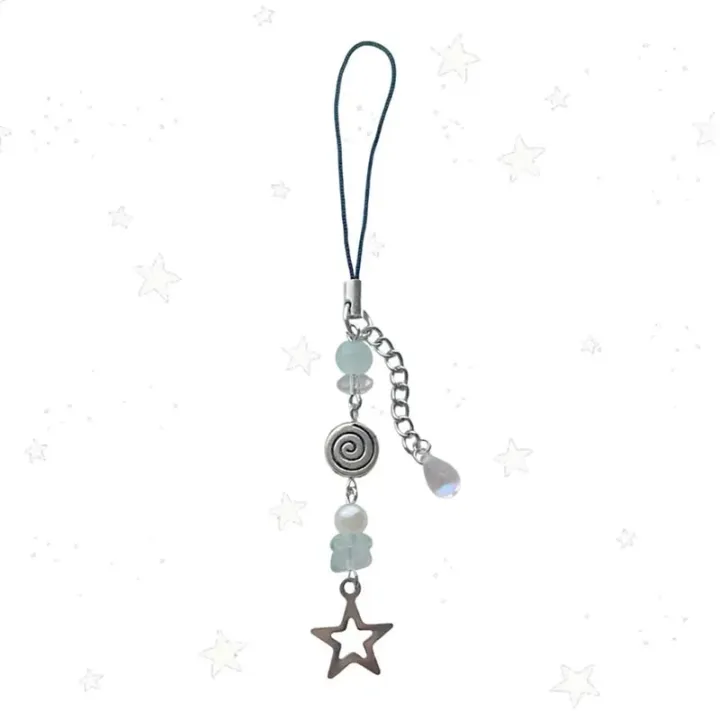 cyberrunge phonecharm stars swirls cybercore y2k grunge fairy keychain