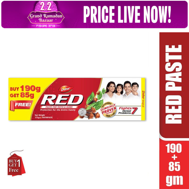 Dabur Red Toothpaste 190 gm (Get Red Toothpaste 85 gm Free)
