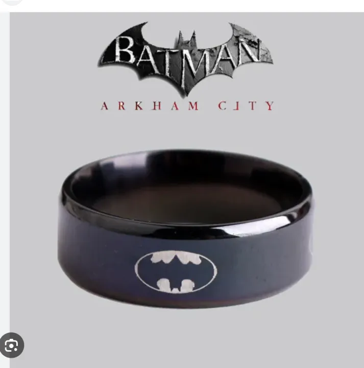 DC Comics inspired 8MM Black Band Batman Logo Symbol Stainless Steel Ring