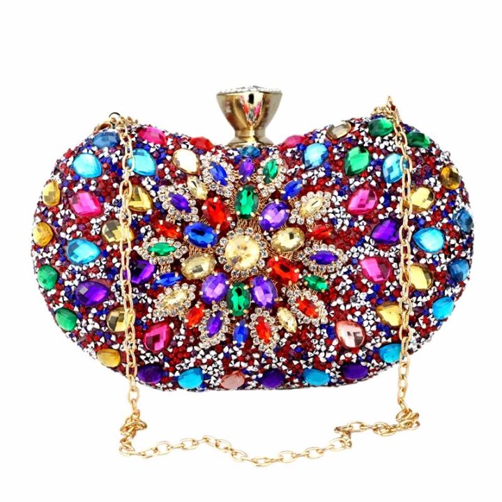 DG PEAFOWL Multi Color Partry Bags Crystal Women Evening Metal Clutches Bag Wedding Party Prom Bridal Handbag Purse