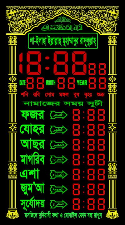 Digital Namaj er Somoy Suchi/Digital Prayer Time Chart
