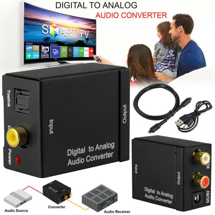 Digital Optical Coax to Analog RCA Audio Converter Adapter with Fiber Cable