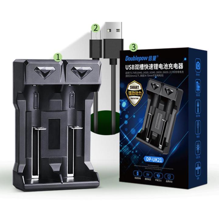 Doublepow UK21 Micro USB Port Dual Slot Universal 3.7V Li-ion Battery Charger for 18650/26650/18500/14500/10440/16340 etc Lithium Battery Fast Charger with Full Charge Indication System - 1 Piece Charger
