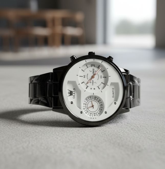 Dual-Time Chain Analog Sports Watch for Men – Round Dial