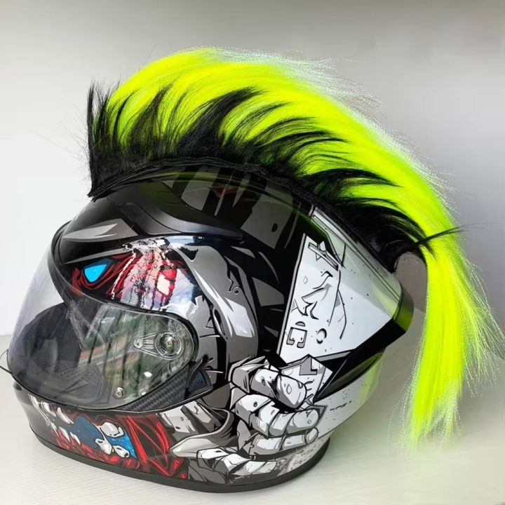Durable Universal Mohawk Helmet Wig Lightweight Punk Style Motorcycle Helmet Decorations with Magic Sticker Cockscomb Wigs