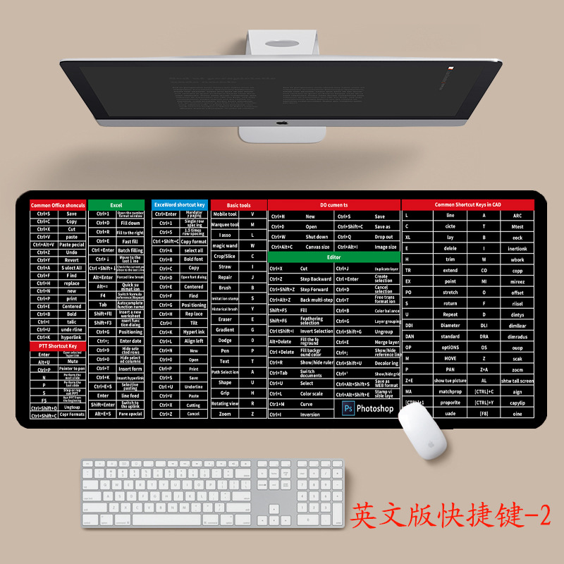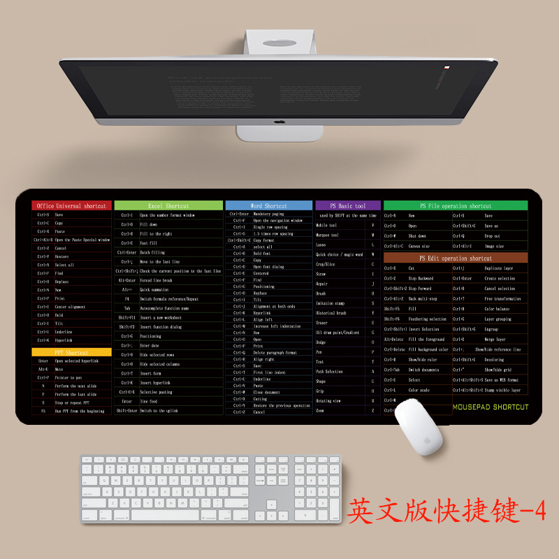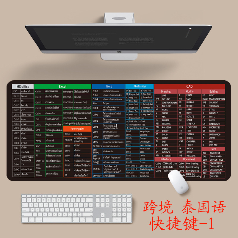 English shortcut keys cross-border mouse pad Japanese Thai Viet Nam version shortcut keys oversized thickened desk mat wholesale