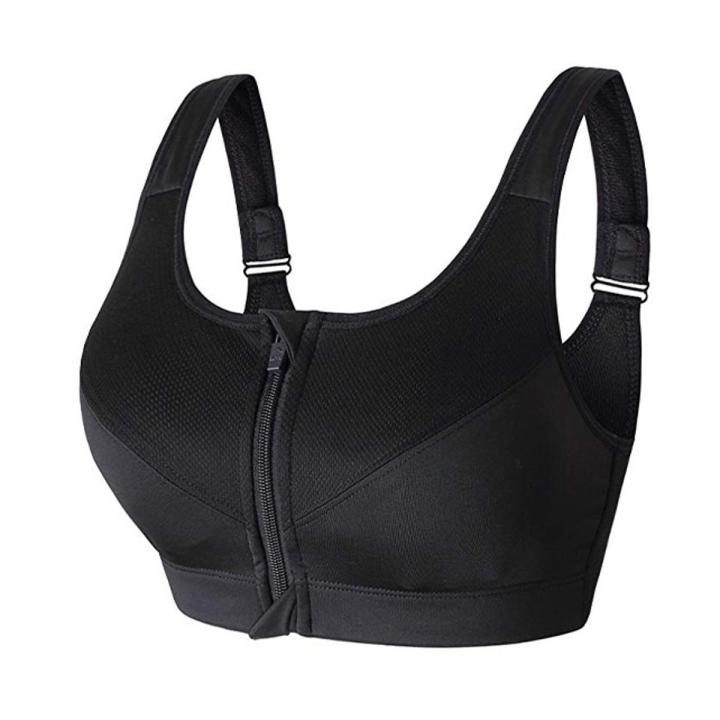 EsoGoal Women Sports Bra F-ront Zipper C-losure P-rofessional A-nti V-ibration Padded S-hockproof with Removable Pads for W-orkout Running G-ym E-xercise