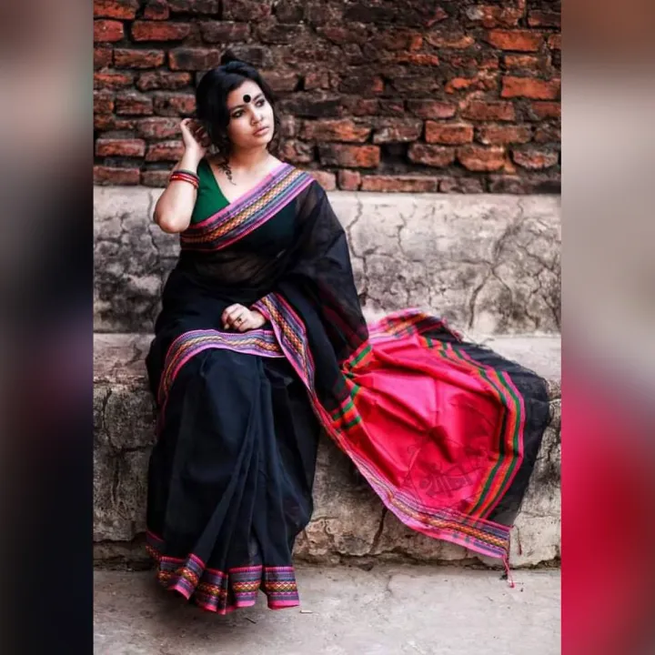 Eye Catching Design Rich Febris Multicolor Half Silk Nokshi Paar (হাফ সিল্ক নকশি পাড়) Saree With Running Blouse Piece For Women