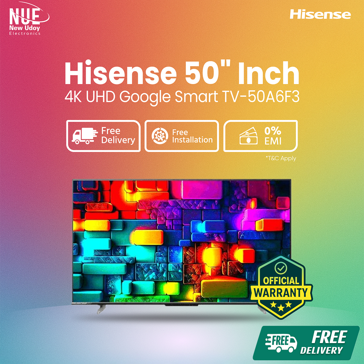 fair electronics Official Brand Warranty Hisense 50-Inch 4K UHD Google Smart TV 50A6F3 🚚 Free Delivery 💳 0% EMI Available with Free Delivery