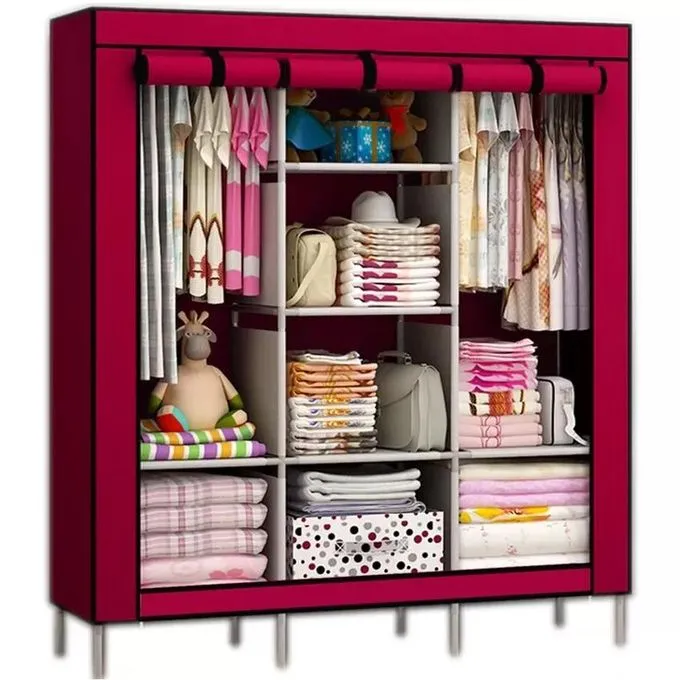 Fancy & Portable Fabric Collapsible Foldable Clothes Closet Wardrobe Storage Rack Organizer Cabinet Cupboard Almirah 3 Door Wardrobe Collapsible Wardrobe
