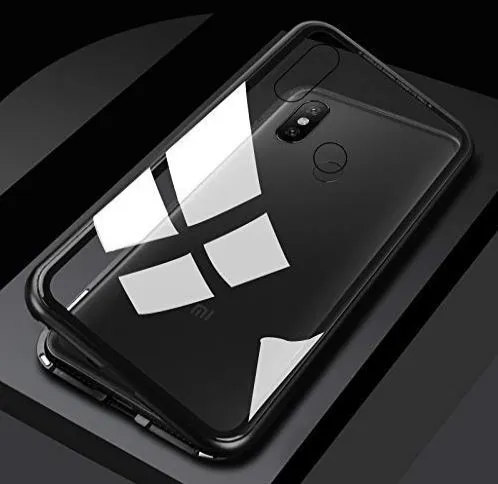 FancyArt 360� Full Body Case for Redmi Note 5 Pro Case, Magnetic Adsorption Metal Back Tampered Glass Cover for Xiaomi Redmi Note 5 Pro (Magnet Frame Black)