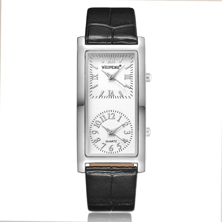 Fashion Men Women Watch Creative Double Dial Quartz Leather Rectangular Wristwatch for Men Elegant Minimalist Couple Watch Gift
