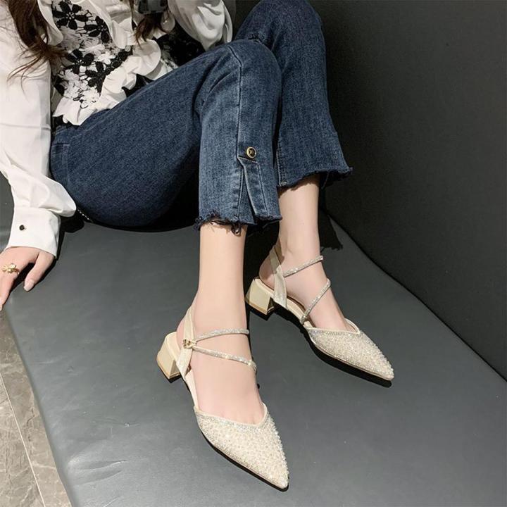 Fashion Shoes Summer New Toe Cap Sandals Women's Elegant Sandals Women's Outer Wear High Heels Thick Heel Shoes Women's Sandals