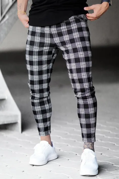 Fashion Street Wear High Stretchy Men's Chino Pants Plaid Slim Male's Business Casual Pants Pencial Checked Trousers Pantalone