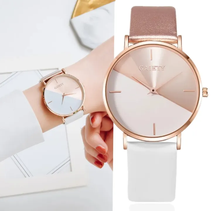 Fashion Women Watch Color Block Round Dial Ladies Quartz Wristwatch Leather Watchband Simple Elegant Female Clock reloj mujer