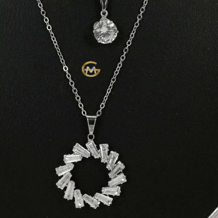 Fashionable Double Layer Stone Necklace Earrings Set for Woman