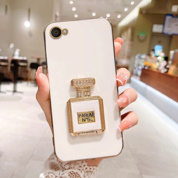 FELMYST No.5 Perfume Case For Vivo V5/V5S/V5 Lite/1609 Luxury Chane Rhinestone Bottle Mobile Holder Phone Casing Makeup Mirror Bracket Girl Women Shockproof Soft Cover