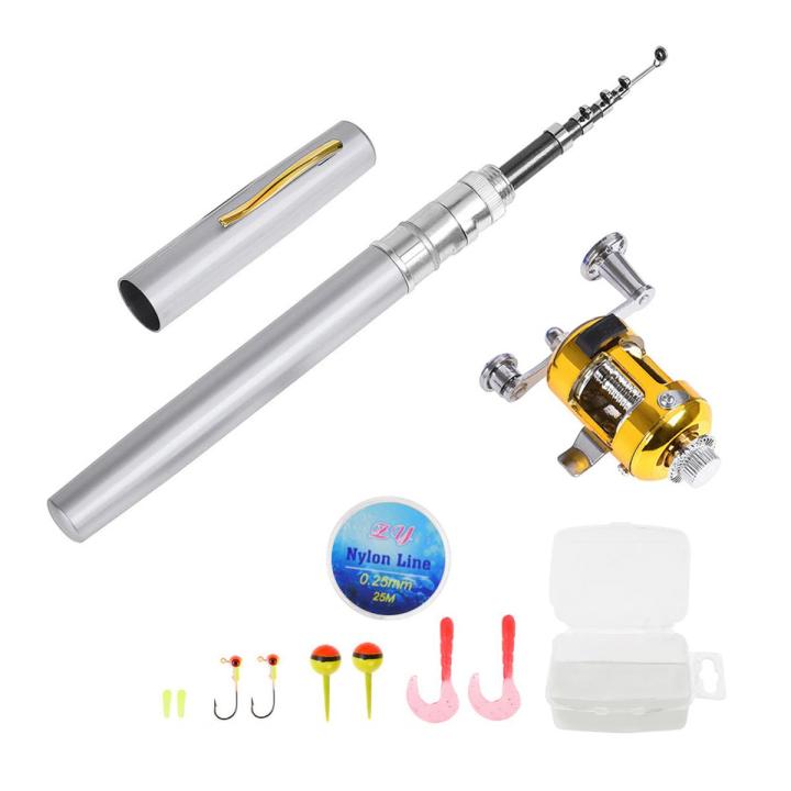 Fishing Rod and Reel Combo Set Telescopic Pocket Pen Fishing Rod with Mini Trolling Reel Fishing Line Soft Lures Baits Jig Hooks Fishing Accessories