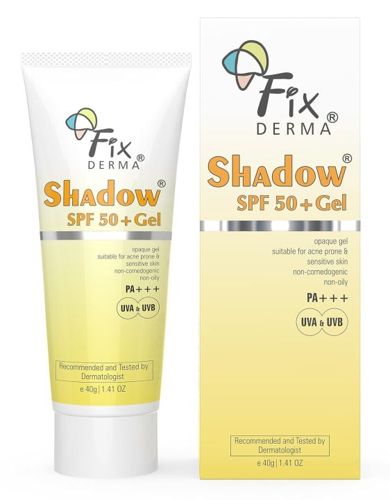 FIXDERMA Shadow Sunscreen Spf 50+ Gel For Oily Skin, Body & Face, Broad Spectrum For Uva & Uvb Protection For Unisex, Non Greasy & Water Resistant, 40g