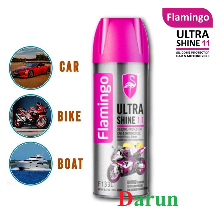 Flamingo Ultra Shine 11 Silicone Protector Car & Motorbike-450ml, Flamingo Ultra Shine Spray Polish, Motorcycle silicon shine spray polish
