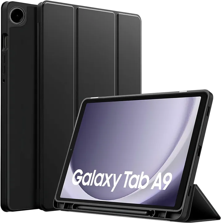 Flip Cover for Samsung Galaxy Tab A9 8.7" case Soft Flexible Flip Case Cover with S Pen Holder for Samsung Galaxy Tab A9 8.7 inch with Auto Sleep Wake Recoil Series (Black)