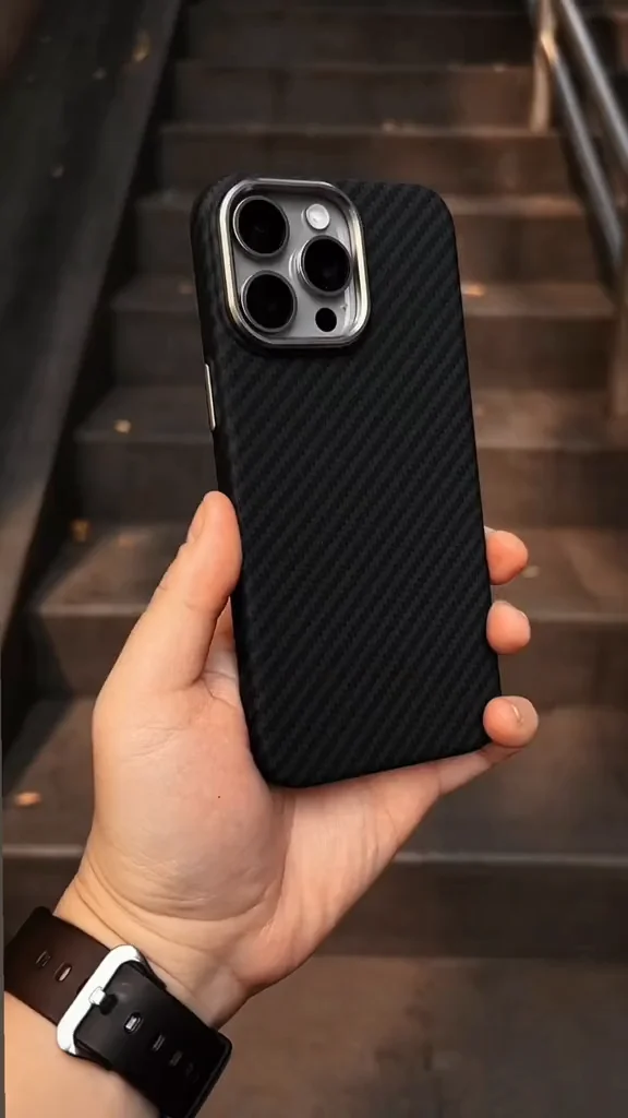 For iPhone LUXO Life Carbon Fiber Texture Matte Bumper Alloy Lens Wireless Charging Magsafe Case